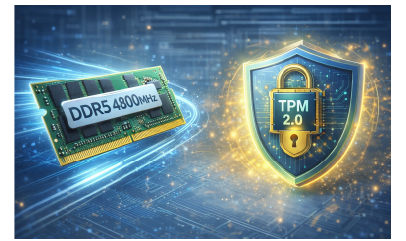 Prend en charge la mémoire SO-DIMM DDR5 4800 MHz (jusqu’à 32 Go) pour un multitâche fluide et intègre le TPM 2.0 pour une sécurité des données renforcée.