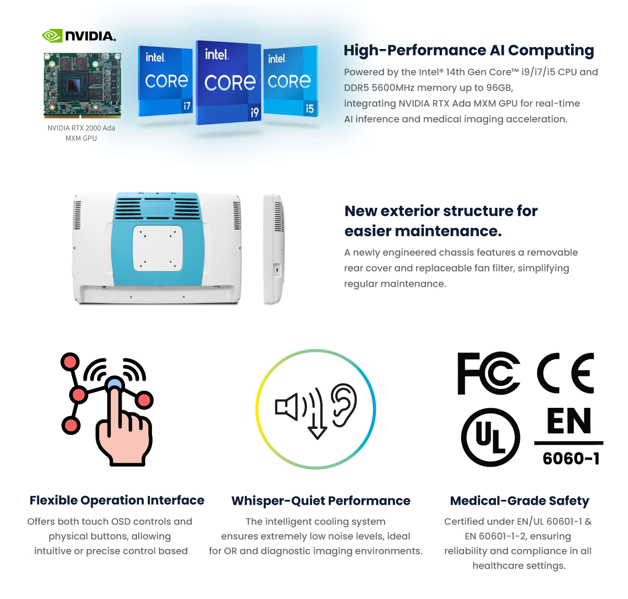 In medical imaging, surgical assistance, and clinical data analysis settings, physicians and engineering teams often face challenges such as insufficient performance, inconvenient maintenance, and noise interference. Onyx introduces the ACCEL-A2203, a medical-grade all-in-one computer designed to address these issues. Featuring a more powerful computing core, quieter operation, and simplified maintenance design, it helps healthcare institutions build a stable, secure, and efficient clinical AI computing platform.