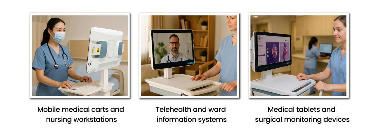 • Mobile medical carts and nursing workstations • Telehealth and ward information systems • Medical tablets and surgical monitoring devices